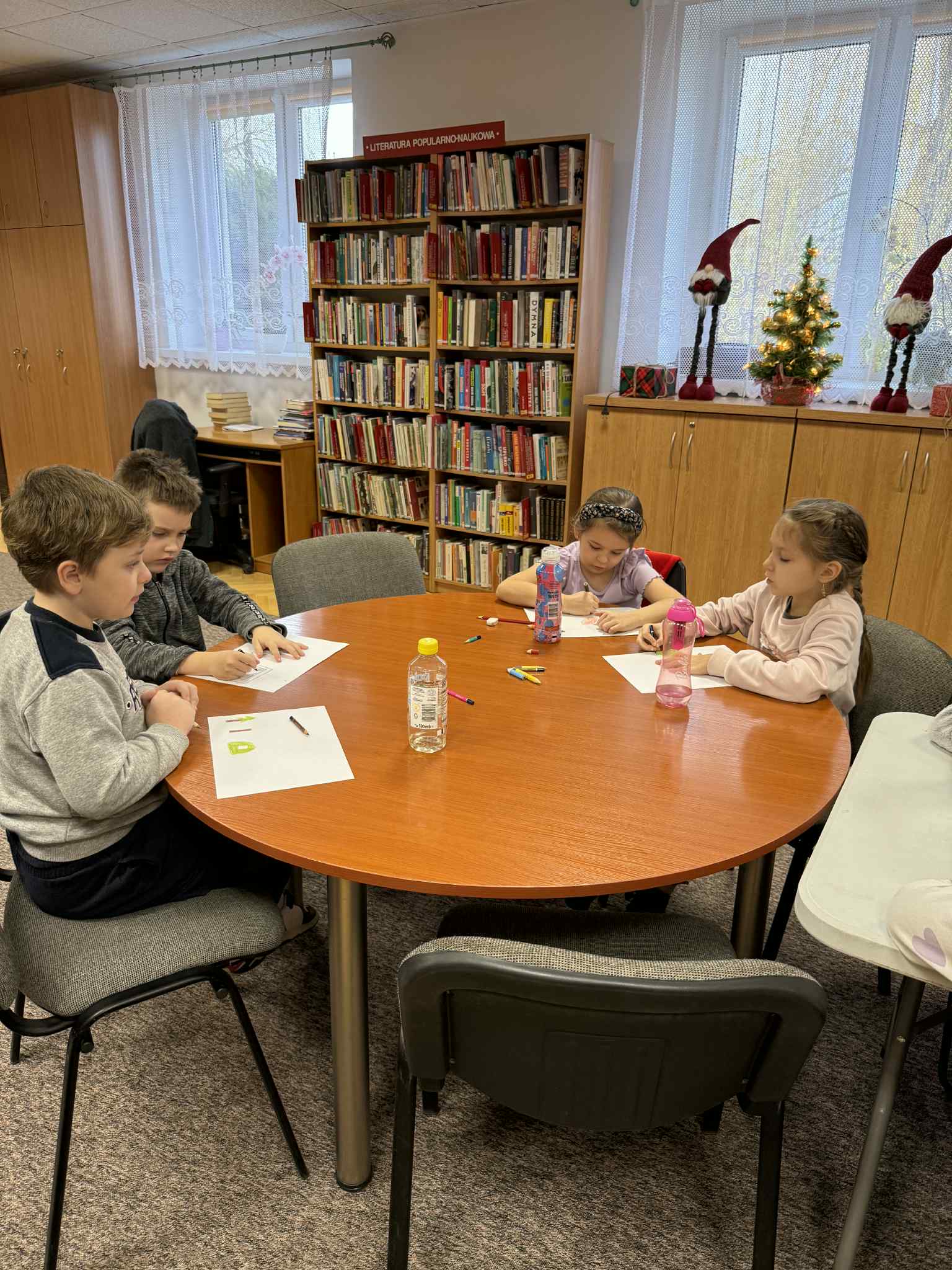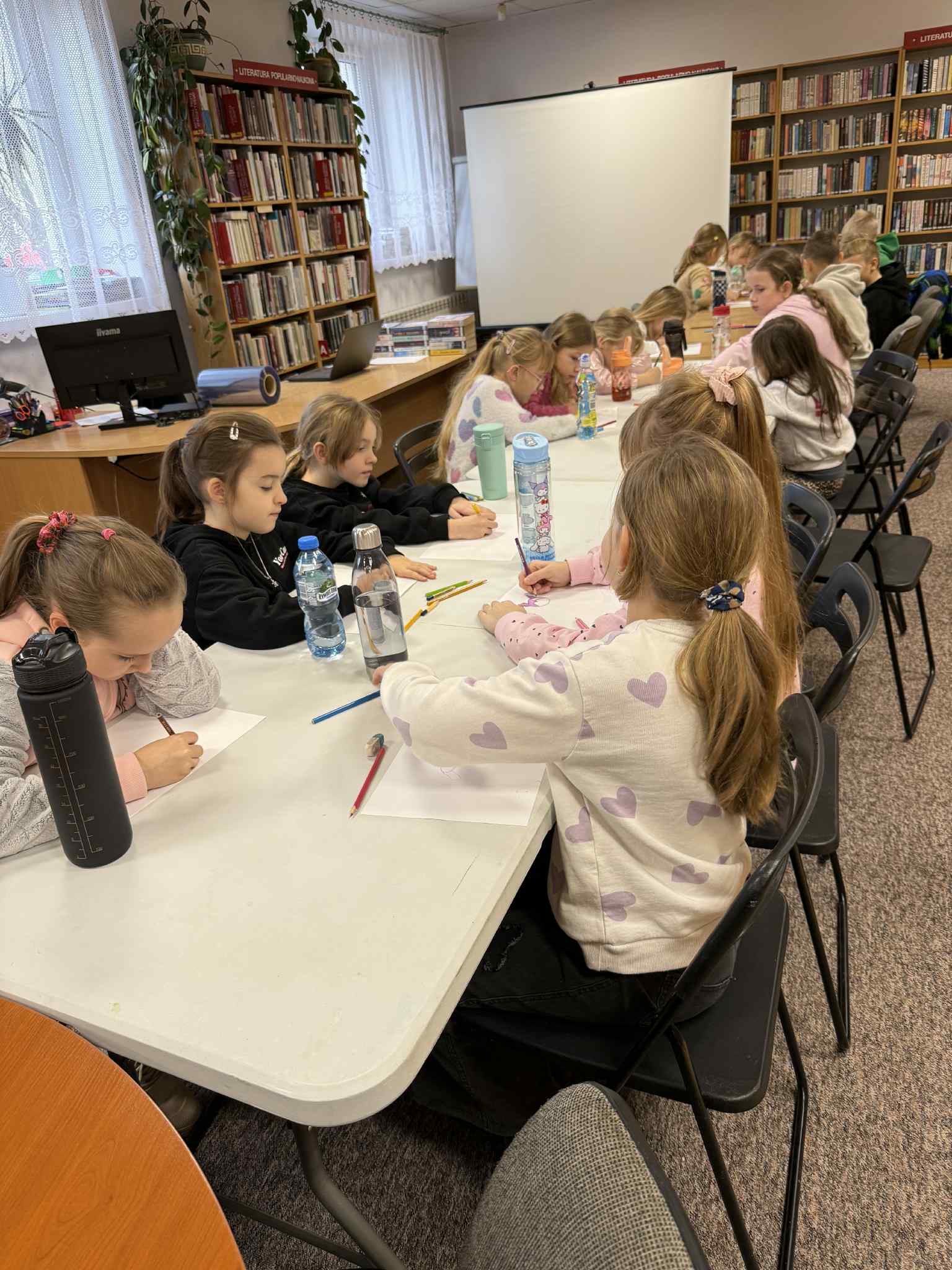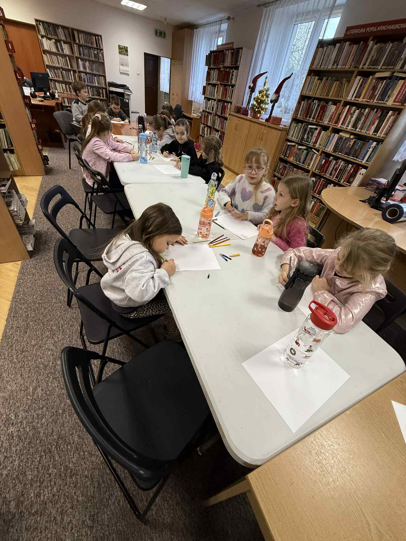 W dniu 17 grudnia bibliotekę odwiedziła klasa II A wraz z wychowawczynią Barbarą Pattillo ze Szkoły Podstawowej im. St. Konarskiego w Milejowie. Dzieci poznały historię książki od informacji wyrytych w skałach, aż po audiobooki i e-booki. Na koniec spotkania stworzyliśmy książkę z rysunków wszystkich uczestników.